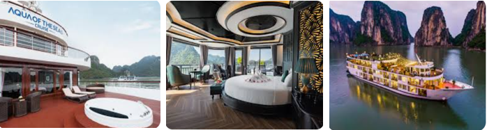 Aqua Of The Seas is a 5 star luxury super yacht offering an ultimate cruising experience through the spectacular landscape of Halong Bay – Lan Ha Bay. 30 cabins all are equipped with a private balcony and ocean-view bathtub. Aqua Of The Seas is also one of the minority of luxurious metal cruises possessing 2 luxury restaurants, an outdoor pool, Gym, Spa… With full facilities, professional service Aqua Of The Seas promises to bring guests the most memorable experience.